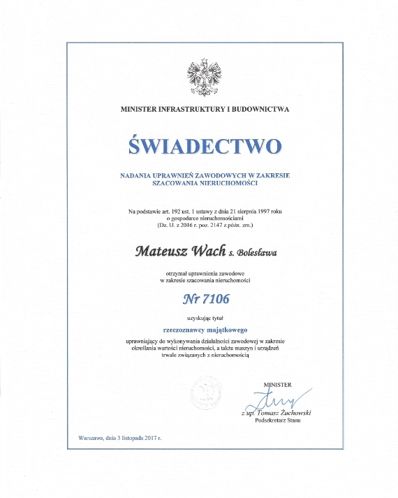 Mateusz Wach | Rzeczoznawca majątkowy nr upr. 7106